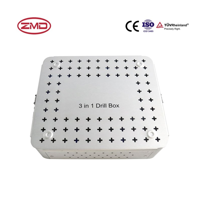 • Multi-Function Design to Fit Three Types of Drills: The 3-in-1 Electric Drill Sterilization Box is designed to store and sterilize three different types of electric drills simultaneously. It can accommodate standard drills, mini drills, and high-efficiency drills, making it suitable for various orthopedic surgeries and treatment needs, ensuring consistency and compatibility of surgical instruments.