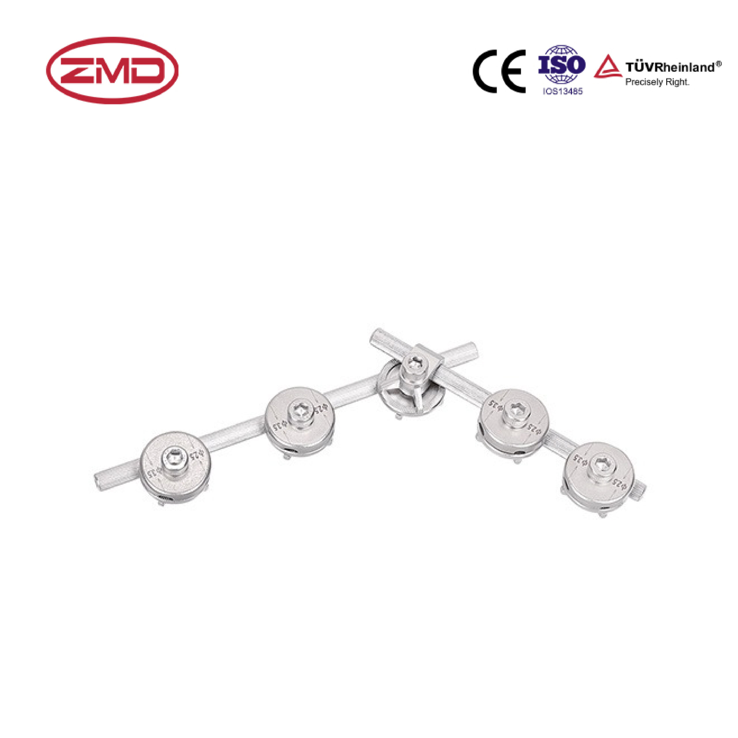 The Combined Elbow Joint External Fixator is a specialized orthopedic device constructed from stainless steel. It is designed to stabilize the elbow joint, supporting healing after fractures, surgical procedures, or chronic conditions. Its modular and ergonomic build ensures tailored fixation that conforms to the elbow’s unique anatomical structure.