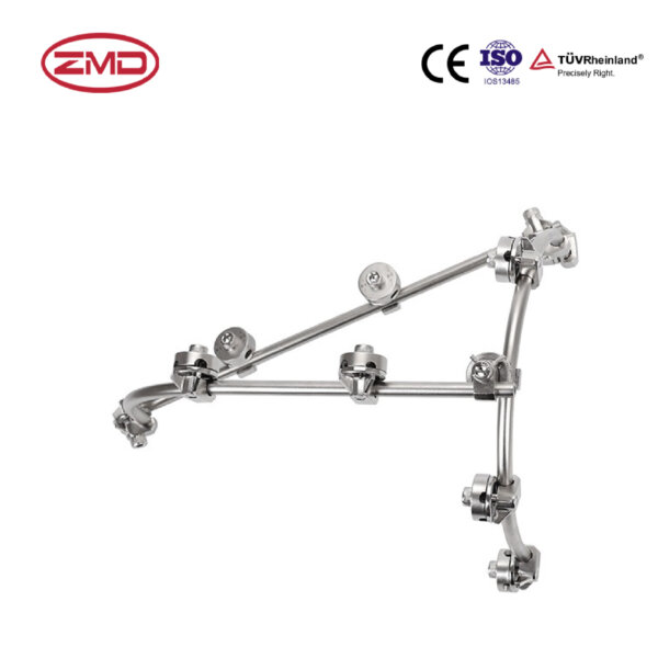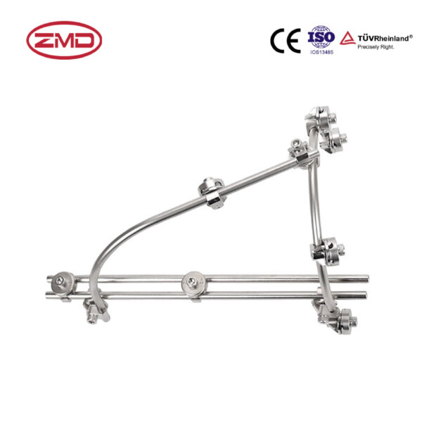 The Combined Tibial Joint External Fixator is a specialized orthopedic device made of stainless steel. It stabilizes the tibial joint (shin joint), supporting healing after fractures, surgeries, or chronic conditions. Its modular and anatomical build ensures tailored fixation that matches the tibial joint’s unique structure.