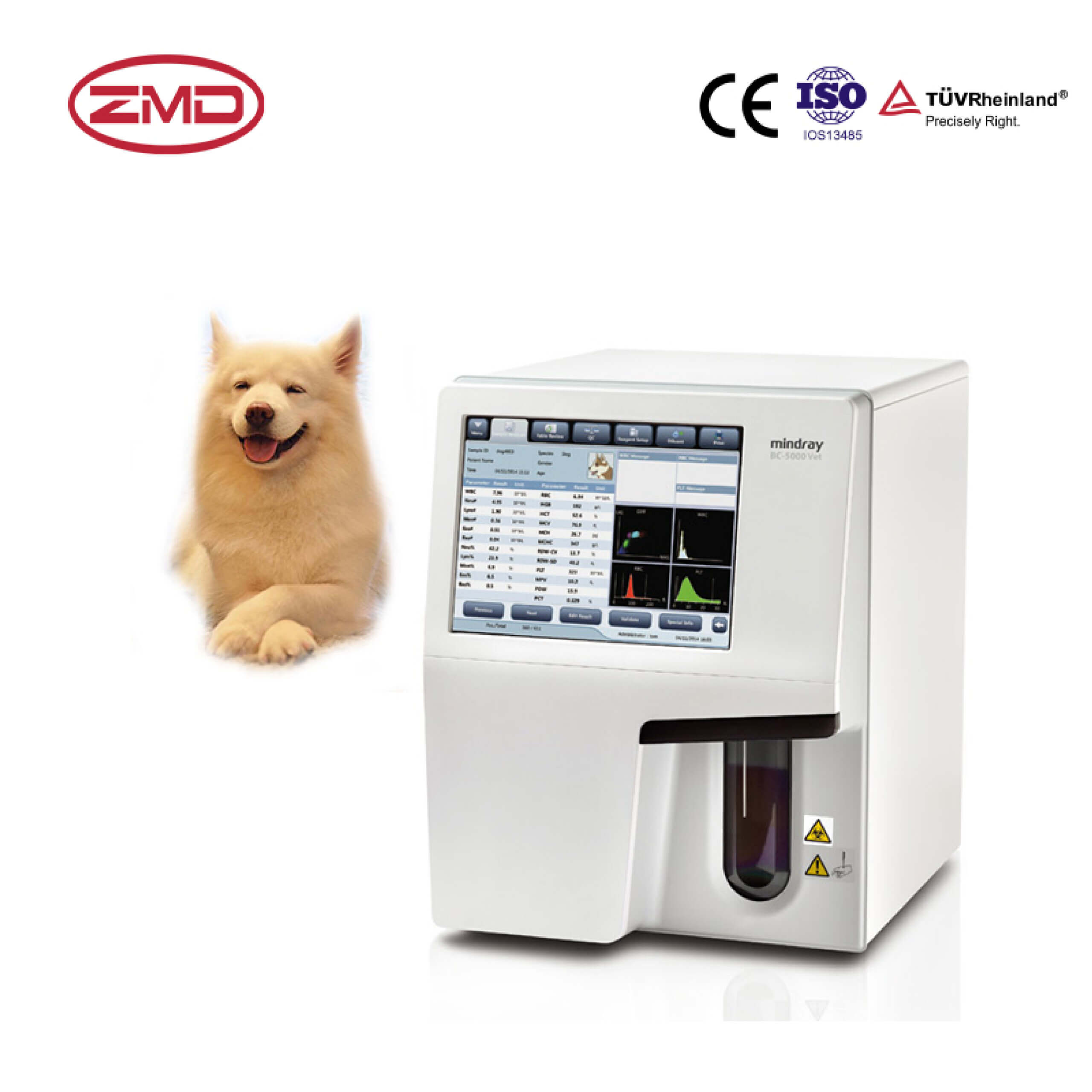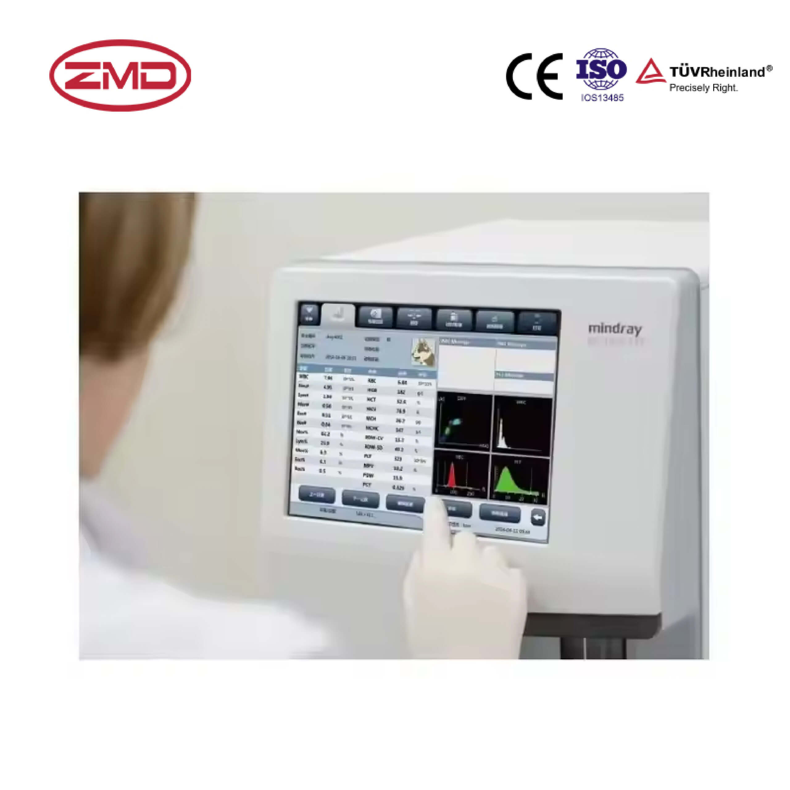 • Automatically classifies white blood cells into 5 categories and analyzes multiple blood parameters (cell counts, morphology, etc.).
