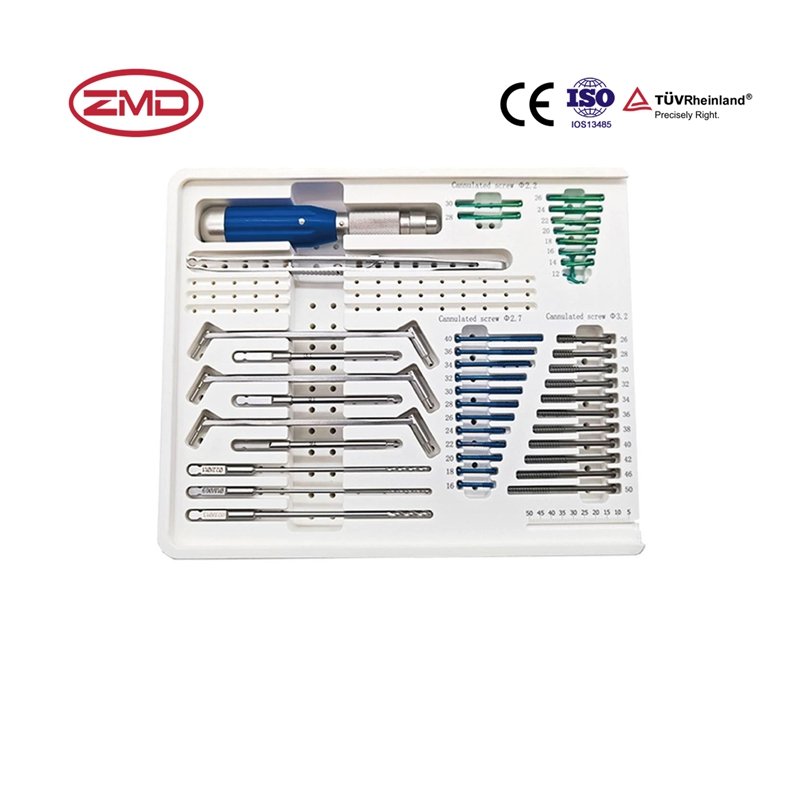 • Semi-Threaded Design for Improved Fixation Strength: The set uses a semi-threaded screw design that offers better grip in cancellous bone. The semi-threaded structure enhances the screw’s holding power within the bone tissue, reducing the risk of screw loosening or displacement, and providing greater stability for the fixation, particularly for fractures in the femoral head, hip joint, and similar areas.
