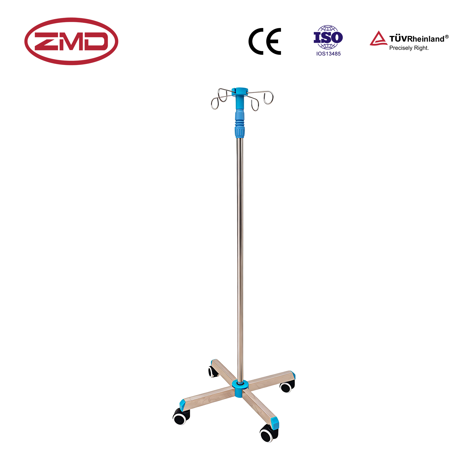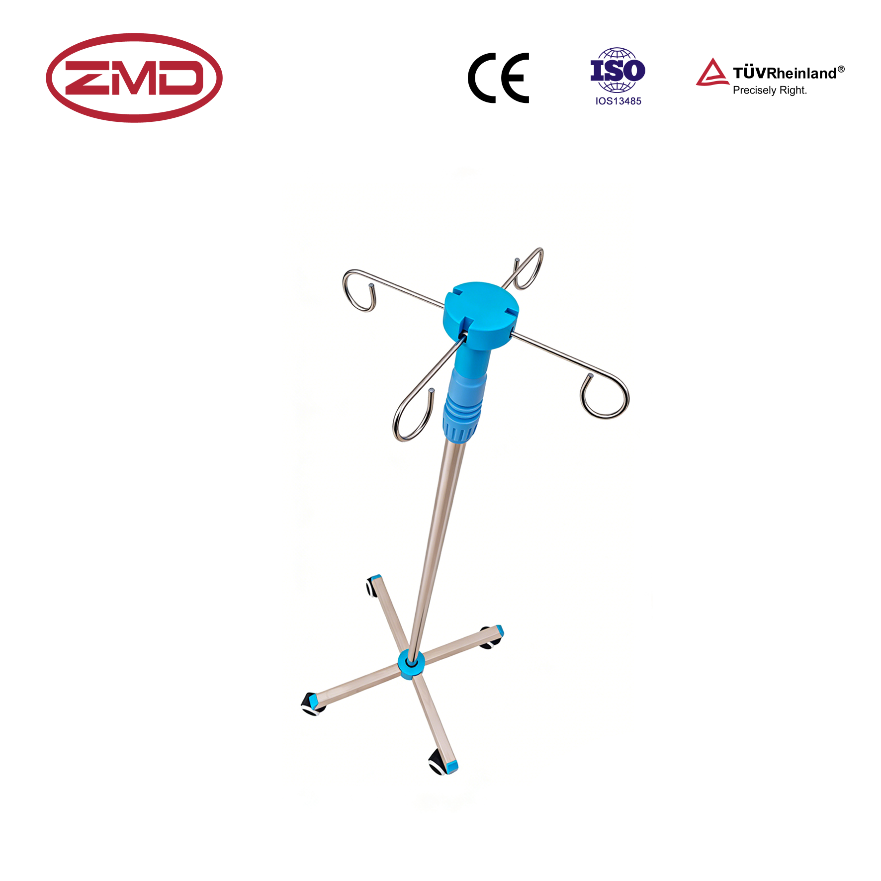 The I.V. Stand Stainless Steel With 4 Wheels is a standardized, precision-manufactured infusion support device, including an adjustable pole, stable base and 4 movable wheels, suitable for most clinical infusion scenarios to ensure safe, flexible and efficient use.