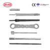 Drives screws/rods to stabilize broken ankle bones (e.g., tibial plafond fractures).