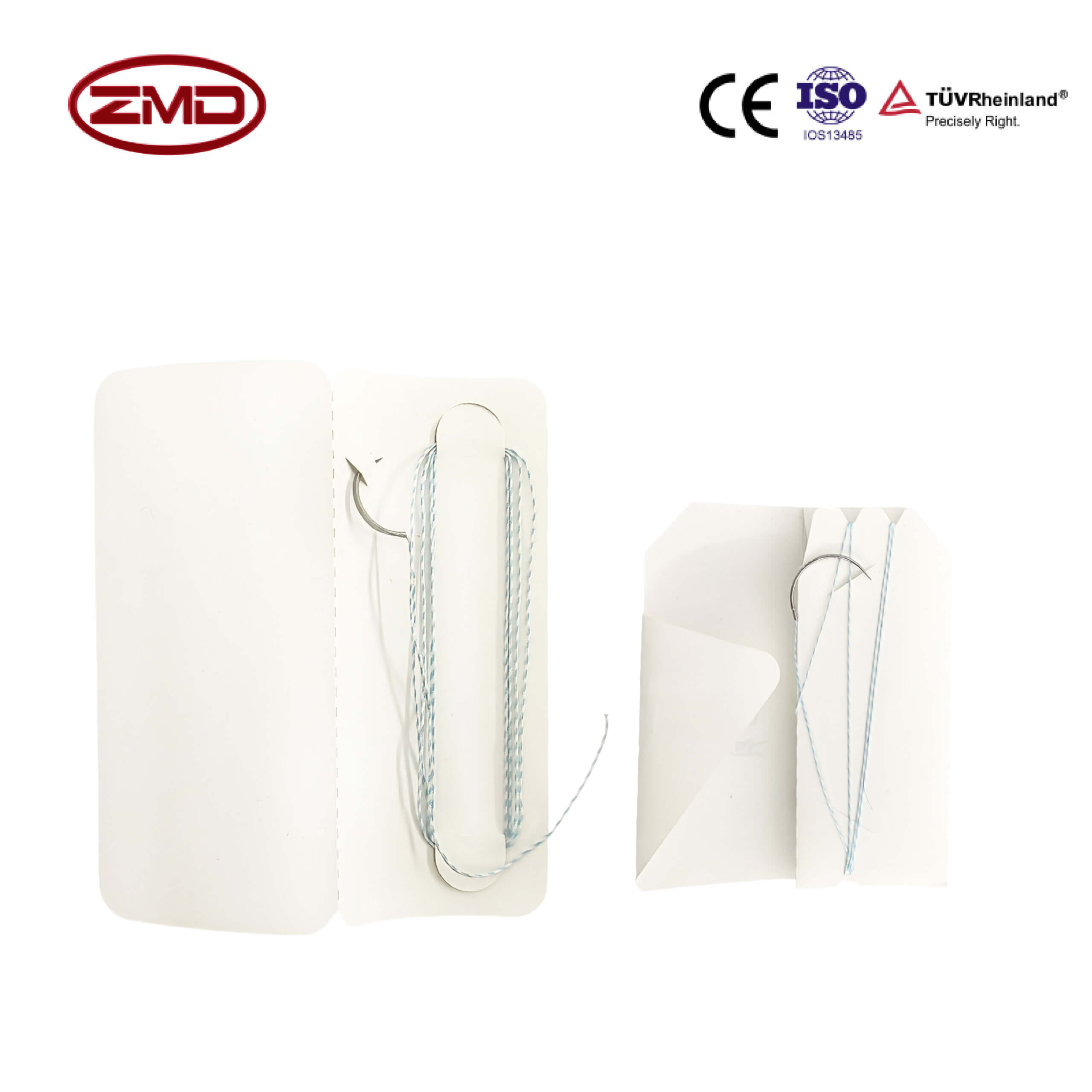 9001.0006 Non-absorbable Suture(double needle) 4-0#45cm white blue, ○1/2 arc-8×9, double needle, 30Cr13