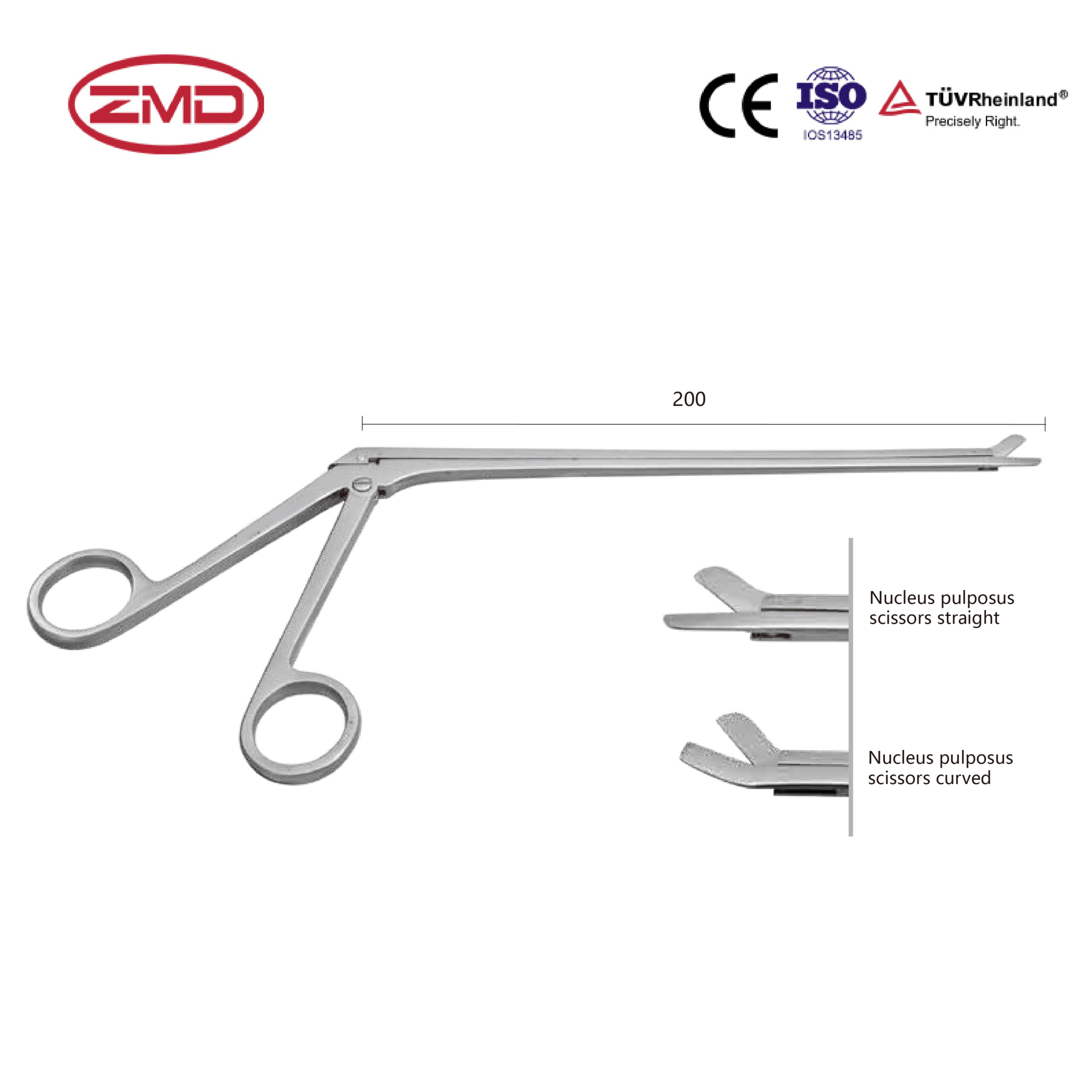 1. Precise Adaptation to Surgical Scenarios:Available in two blade designs—straight and curved—with a length of 200mm, it can flexibly reach surgical sites and adapt to nucleus pulposus treatment needs in different spinal regions (such as cervical and lumbar spines), enabling precise operation even in narrow surgical fields.