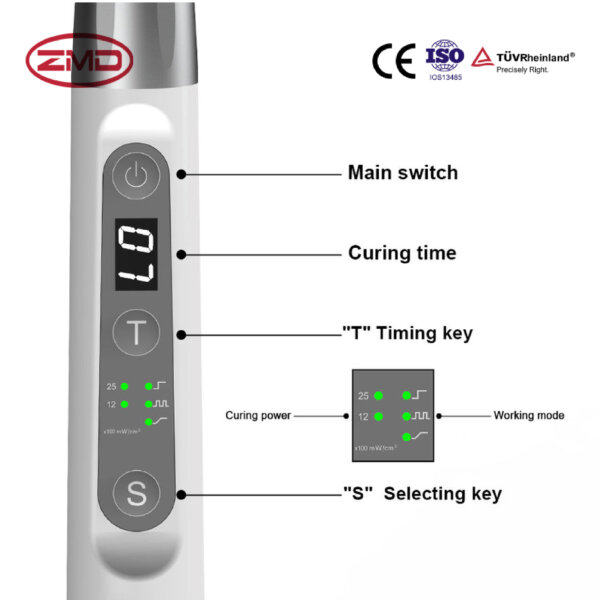 1. Ultra – fast Curing:Adopts high – power blue LED, resin curing only takes 1 second (curing depth up to 3mm), with a maximum light intensity of 2500mW/cm², greatly improving treatment efficiency.