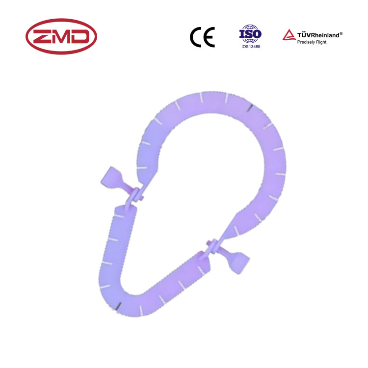 Reusable Surgical Retractors 22.0×11.3cm is a standardized, adjustable orthopaedic surgical instrument for soft tissue retraction and surgical field exposure. Its C-shaped frame and dual locking knobs deliver customizable, stable retraction force, fully meeting the requirements of standardized orthopaedic procedures.
