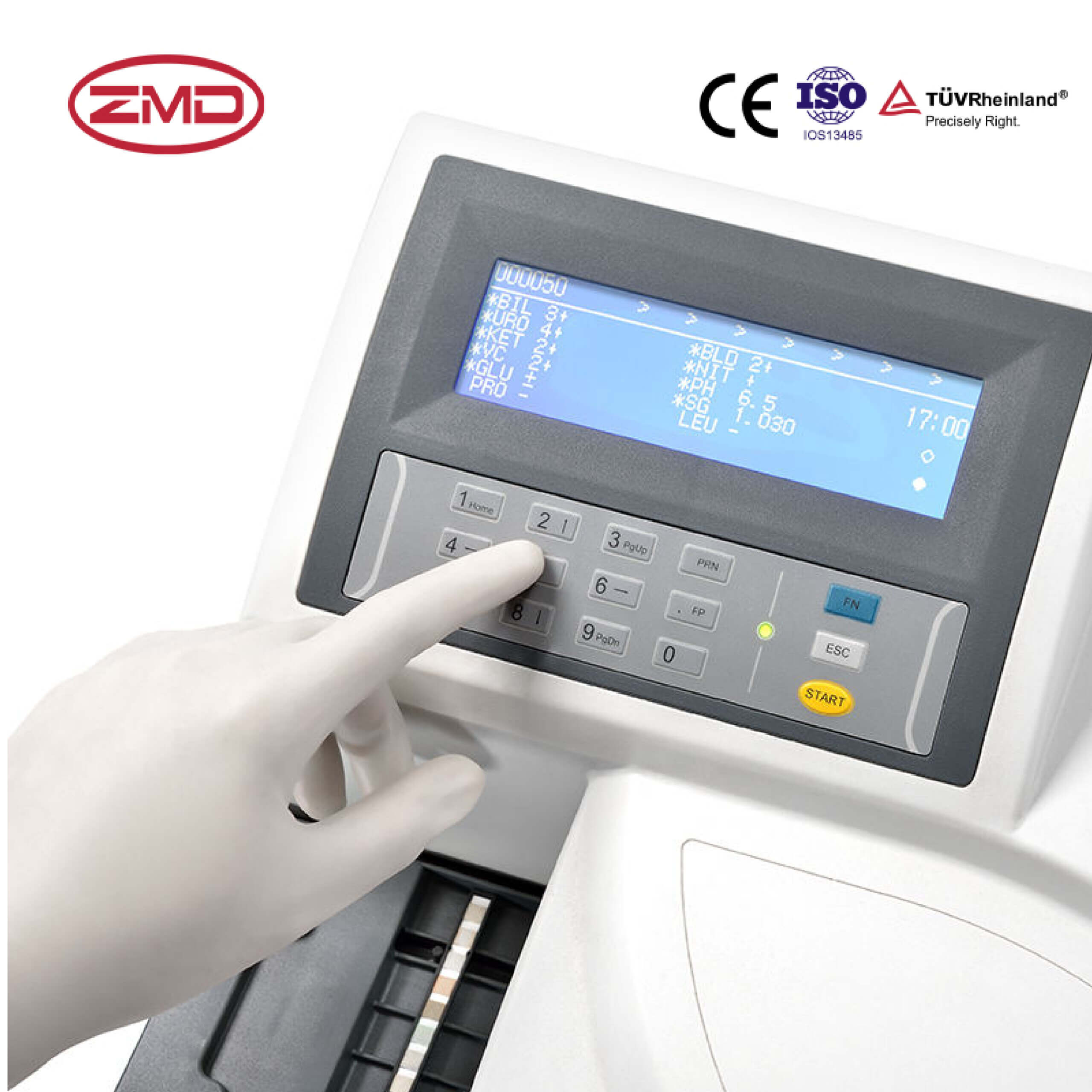 • Detects 14+ urine components (glucose, protein, blood, pH, etc.) + physical traits (turbidity, color).